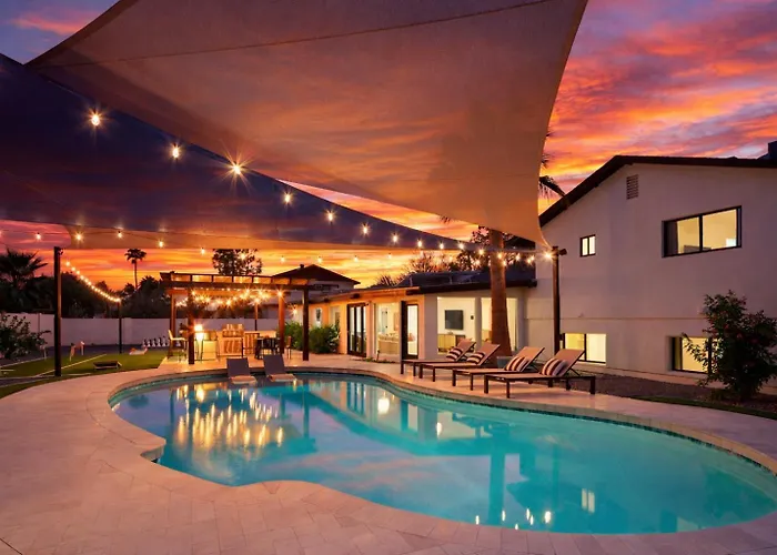 De villa, genesteld in de Paradise Valley wijk van Phoenix, ligt op een rijafstand van 15 minuten van het Muziekinstrumentenmuseum en op wandelafstand van 25 minuten van winkellocaties zoals Paradise Valley Mall. Hancock Plaza Shopping Center is op afstand van 2 km van dit vakantiehuis te vinden. Deze gesitueerde in Phoenix Sunburst Estate - Pool - Hot Tub - Tons Of Games! Villa bevindt zich binnen een paar straten van Tree of Life Congregation en is een populaire bestemming voor zowel gelovigen als toeristen.